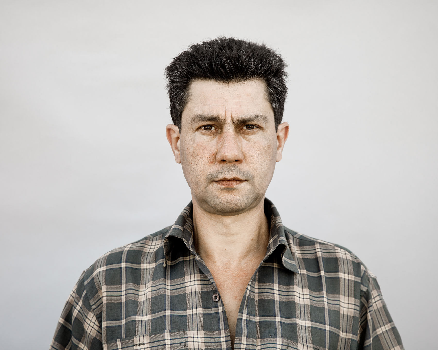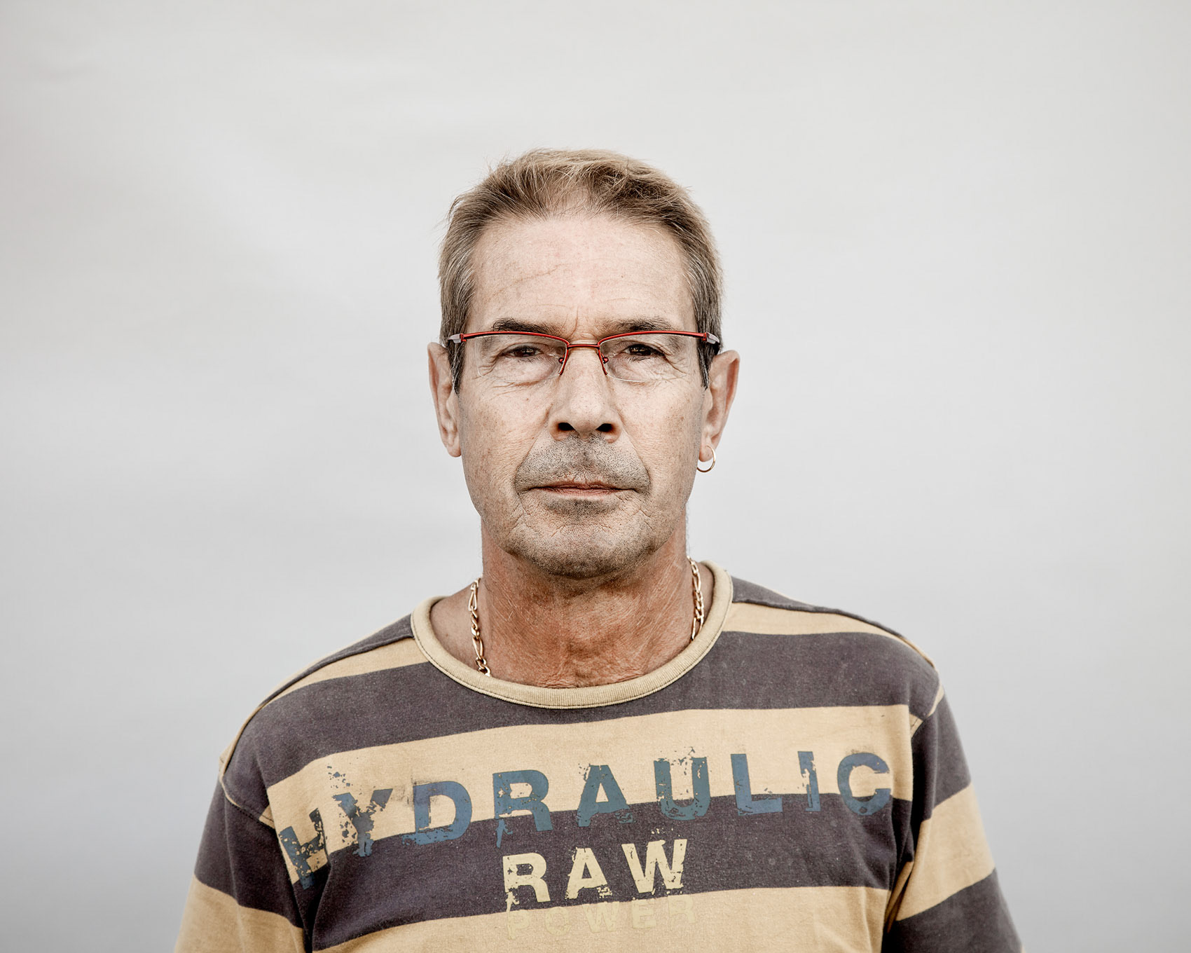 Claude Pauquet, en commande pour le journal Libération, a souhaité traiter le sujet sous l’angle du rapport entre l’ouvrier et son entreprise et de faire leur portrait, sur fond neutre.