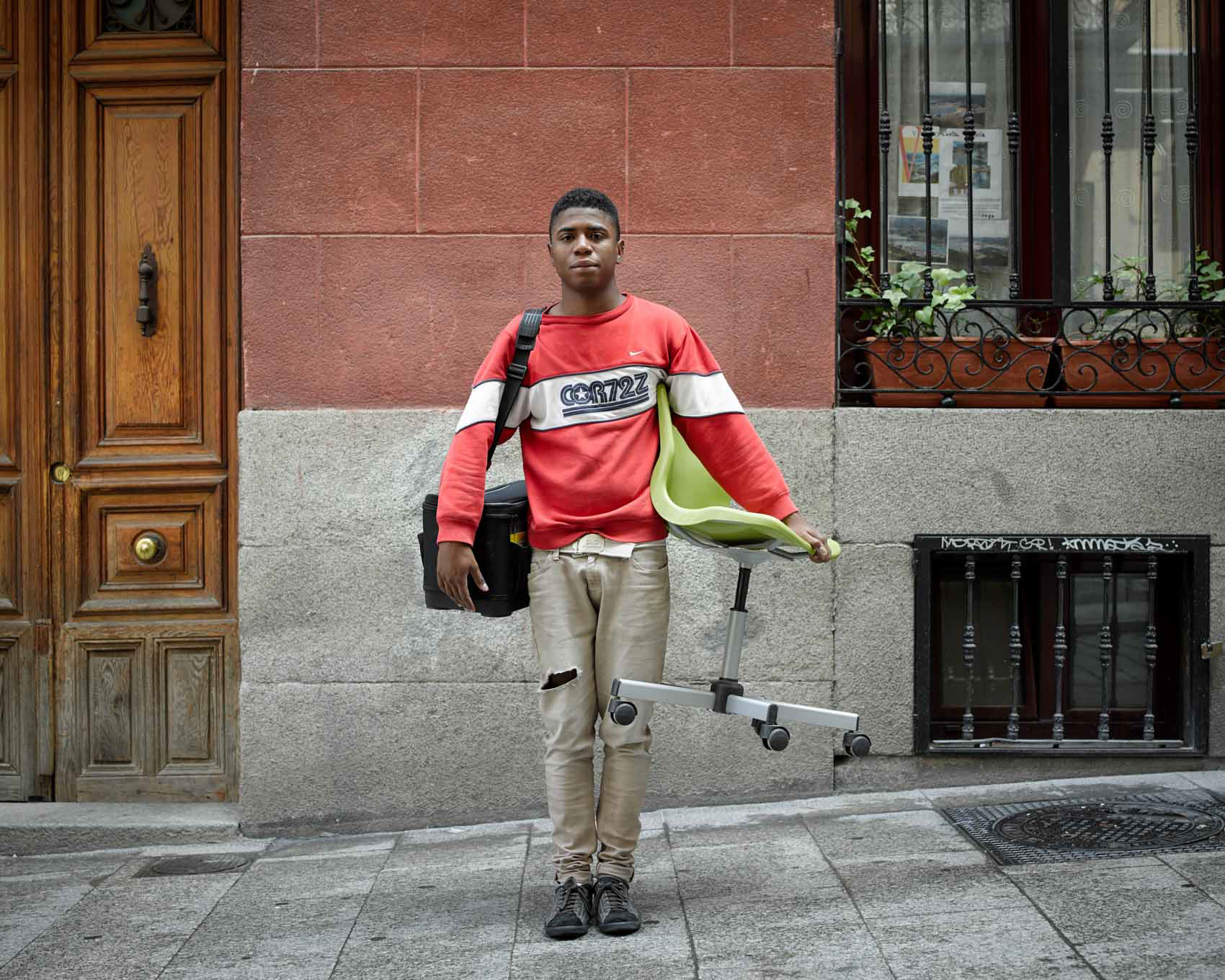 Claude Pauquet a posé son trépied dans une dizaine de quartiers de Madrid et a dressé le portrait, en pied, de 90 passants, dans un protocole simple de portraits de rencontre : étudiants, universitaires, artistes, demandeurs d’emploi, créateurs de mode, gardiens d’immeuble, journalistes, ouvriers, antiquaires, etc..