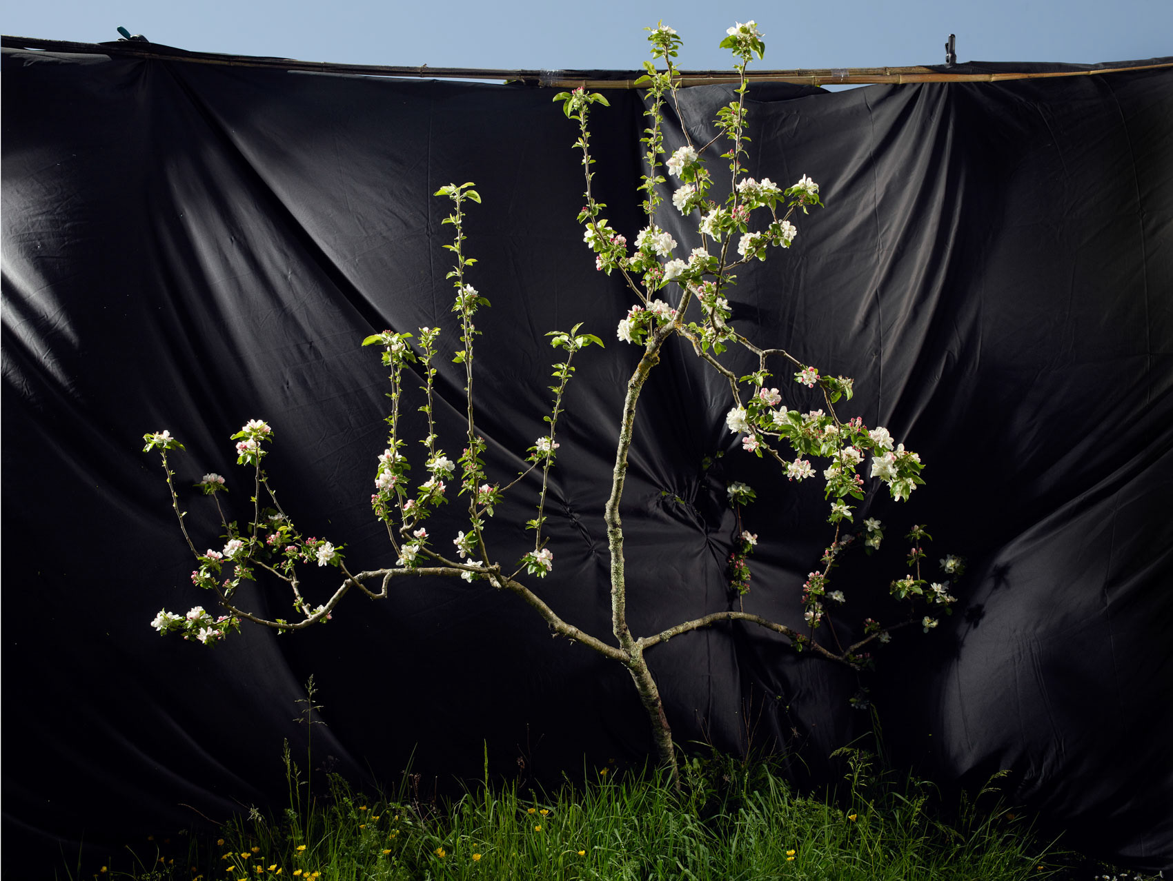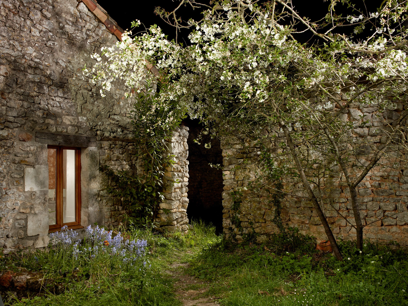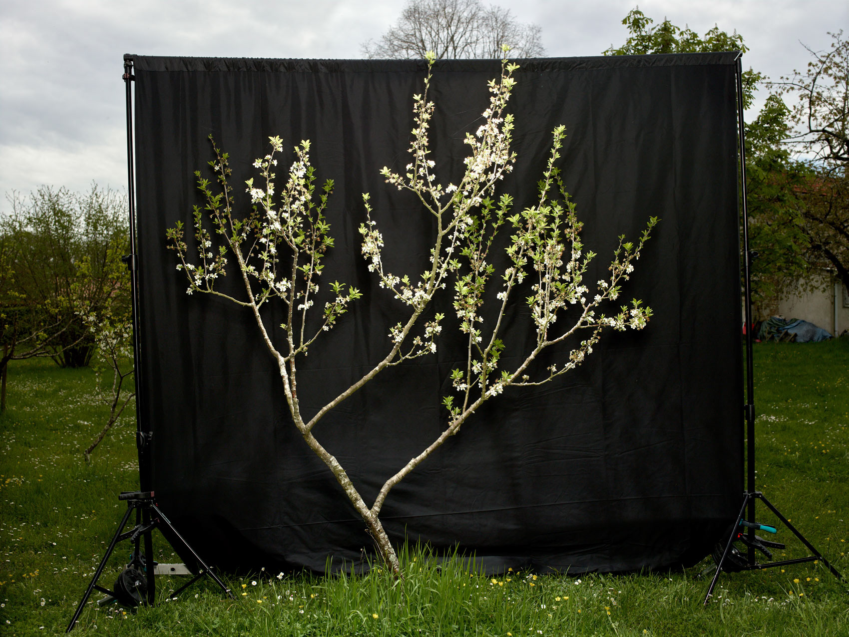 Le fond noir qui a figé la nature printanière qui se réveille, nous renvoie au rêve du jardin clos et protégé.
