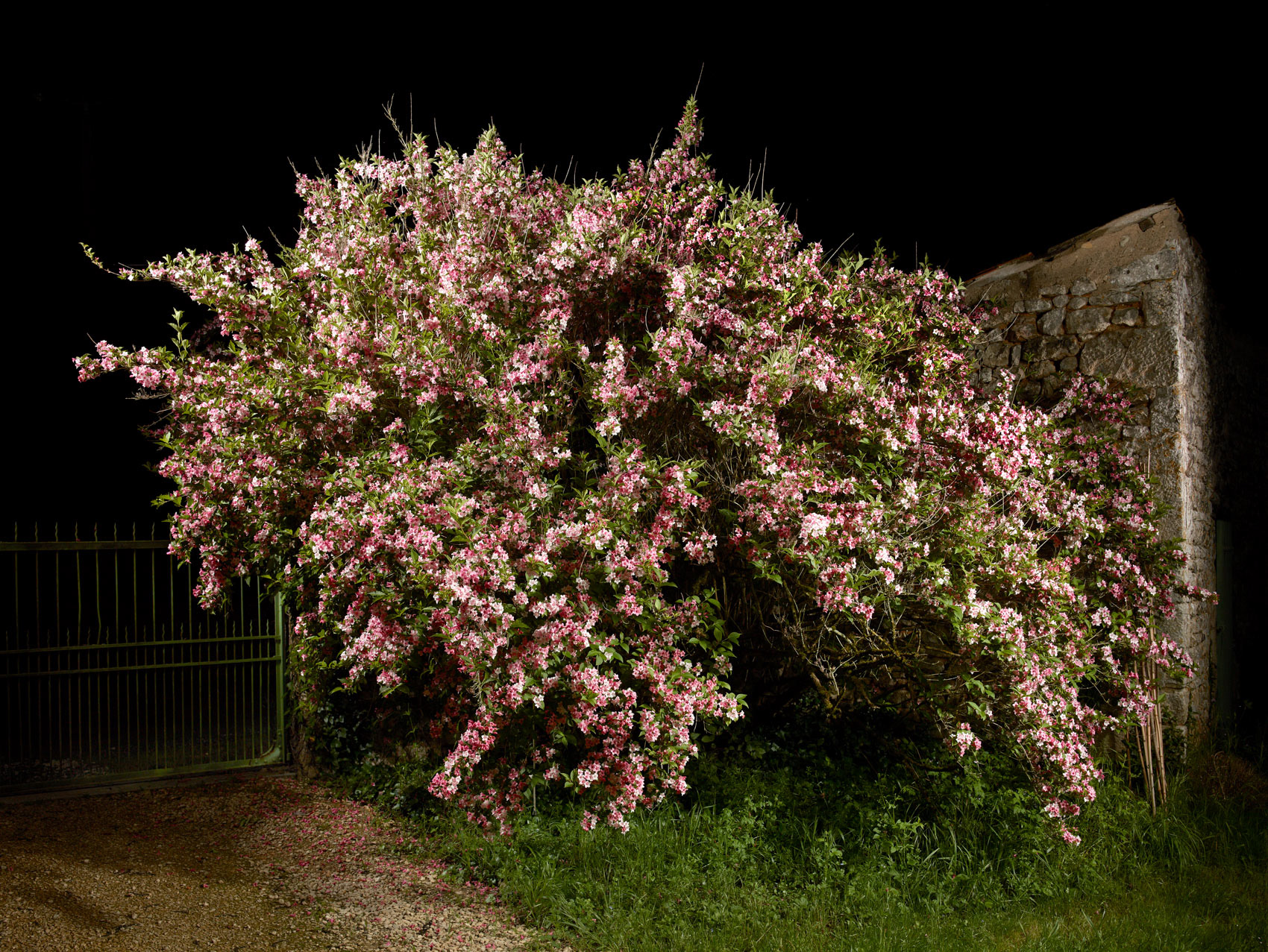Sont photographiés : lavande, pommiers, bambous, bouteilles d'eau, haies, bûches de noisetier, boutons d'or, weigelia, glycine, noyers, fleurs de marronnier, cerisier, pruniers, légumes du marché, palmiers...