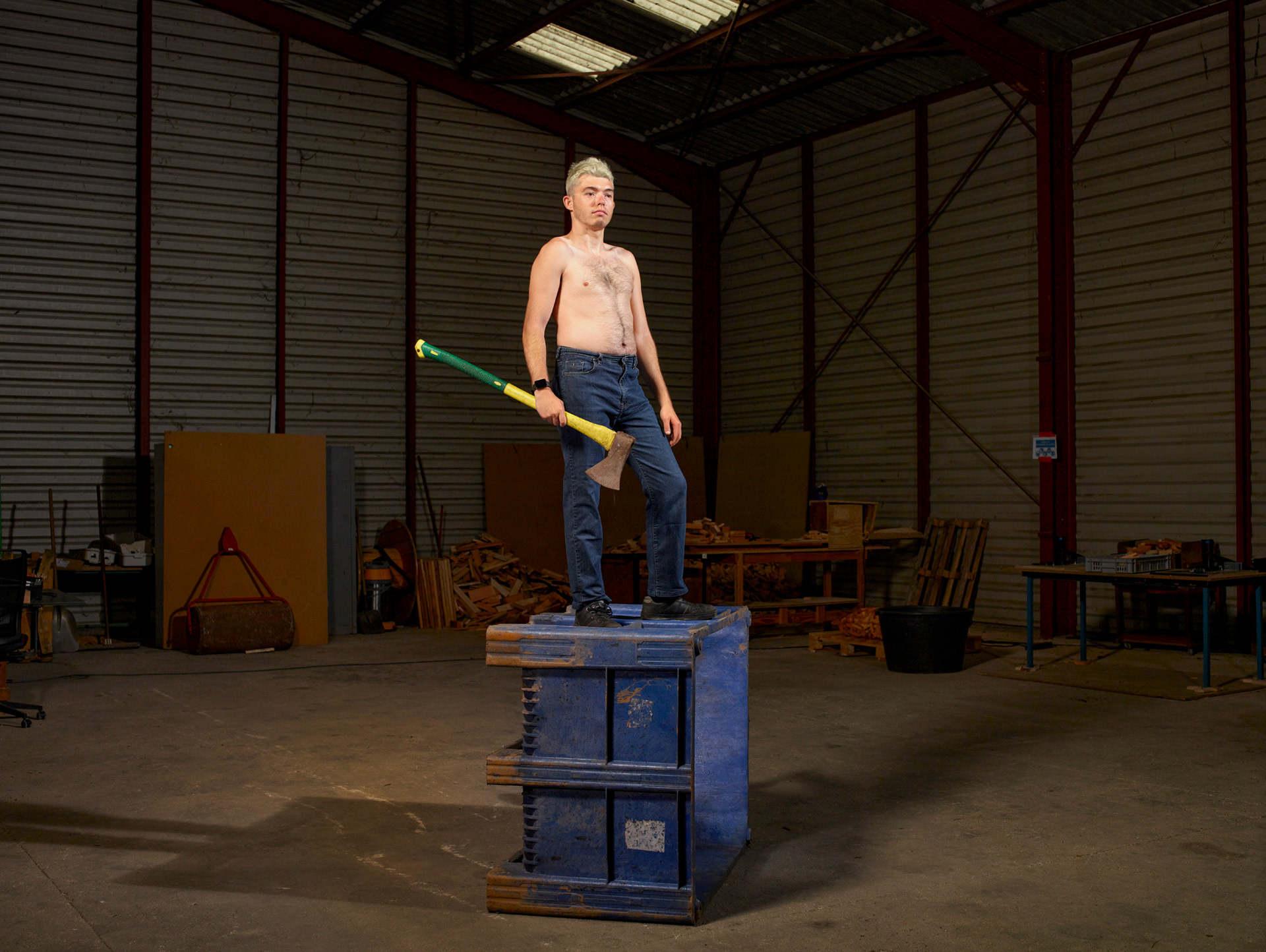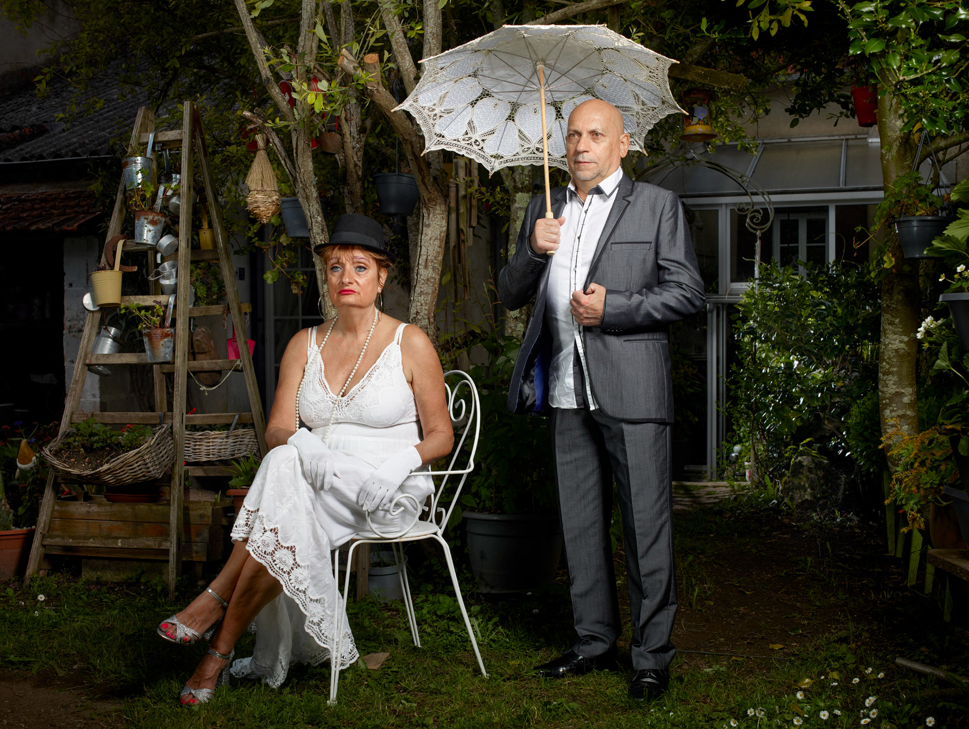 Le portrait d’ouverture fait le lien avec cette série de portraits anciens. Dans celui-ci, il a utilisé un des fonds sur toile peinte du photographe Henri Gascard qui a exercé après la seconde guerre mondiale à Lussac-les-Châteaux.